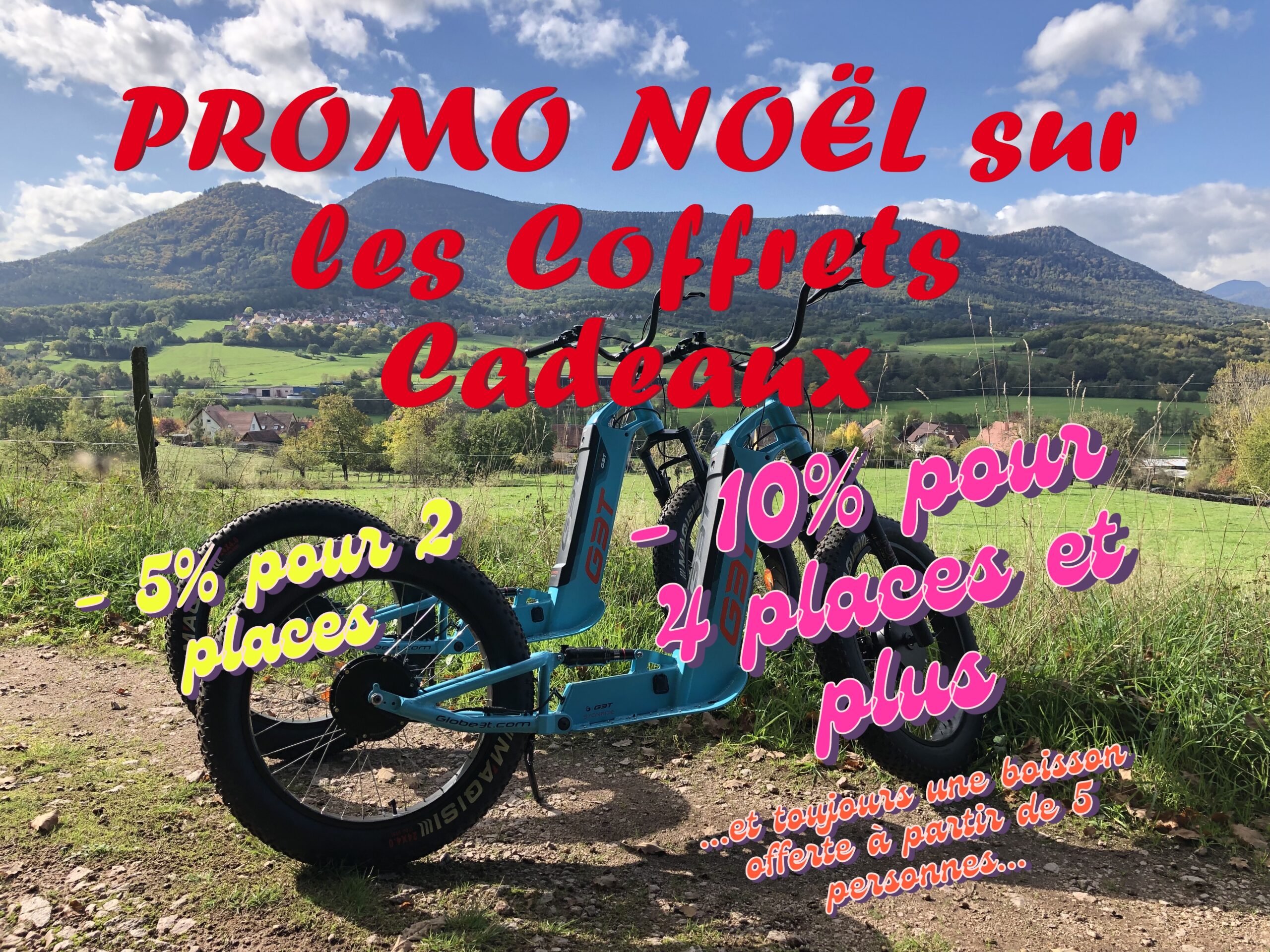 Que ce soit pour un séminaire, un enterrement de vie de garçon ou de jeune fille ou une réunion de famille, toutes les occasions sont bonnes pour découvrir les balades en trottinette électrique tout terrain que nous proposons en Alsace 🥨